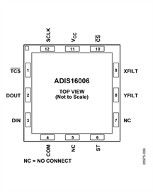 ADIS16006提供7.2 mm × 7.2 mm × 3.7 mm、12引脚LGA封装。