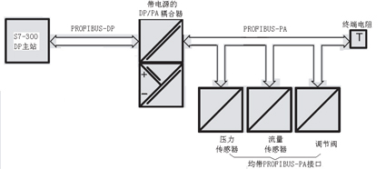 该控制系统中,DP/PA耦合器是PROFIBUS-DP和PROFIBUS-PA两种总线的结合点和物理连接器。DP/PA耦合器可以单独使用,也可以和DP Link配合使用,在本项目中单独使用即可。